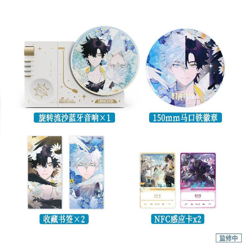 Bluetooth Speaker(Rotating Quicksand Decor) + 150mm Badge + Bookmark * 2 + NFC Cards(For playing music) * 2
